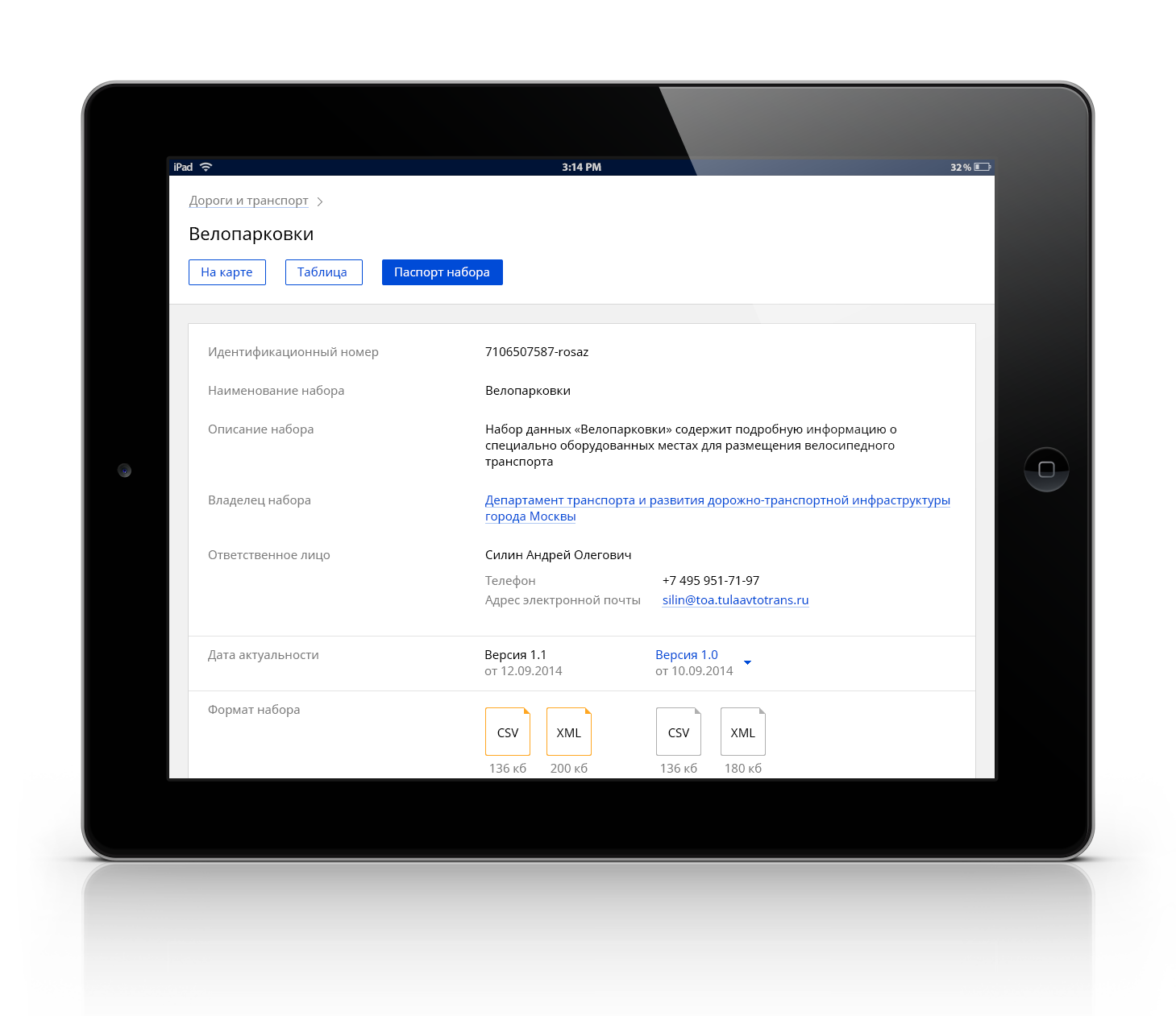 - в виде файлов для скачивания в рекомендуемых форматах (CSV)