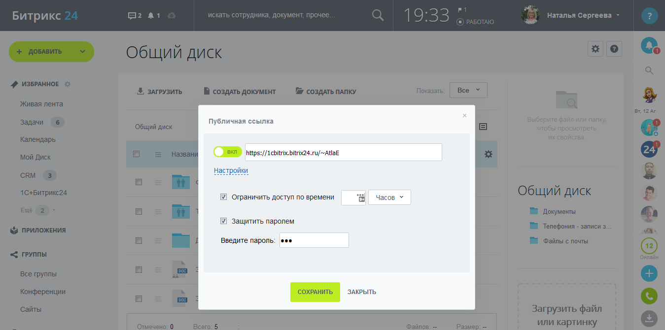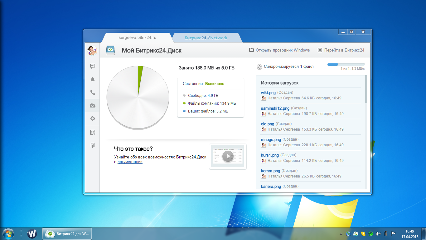 Система управления документами дает возможность вести историю изменений документа, загружать сразу несколько файлов, подключить портал как сетевой диск для всех операционных систем (всех версий Windows, Mac OS, Linux). У каждого документа есть единая карточка, работает быстрый поиск по файлам и по содержимому (с мгновенным поиском и подсказками), удаленные документы остаются в «Корзине». При работе с документами можно использовать бизнес-процессы. Реализована поддержка версионности. Также вы можете, работая как в Windows, так и в Mac OS, с помощью «Битрикс24.Диск» получить доступ к вашим документам на портале с любого устройства и синхронизировать все изменения между этими устройствами. Благодаря поддержке технологий Google Docs вы можете открыть, просмотреть и отредактировать непосредственно на портале любые файлы популярных форматов.