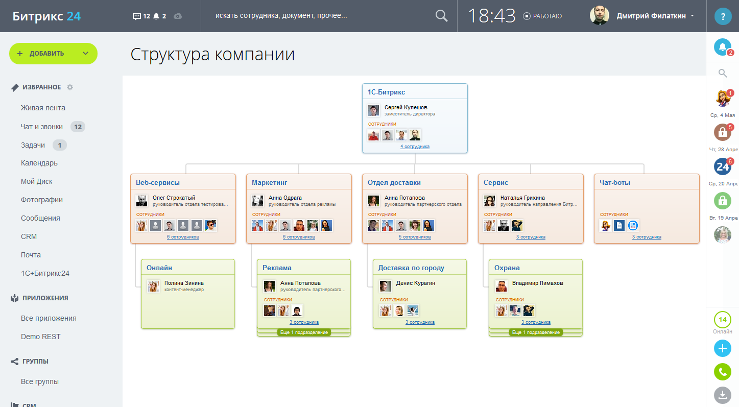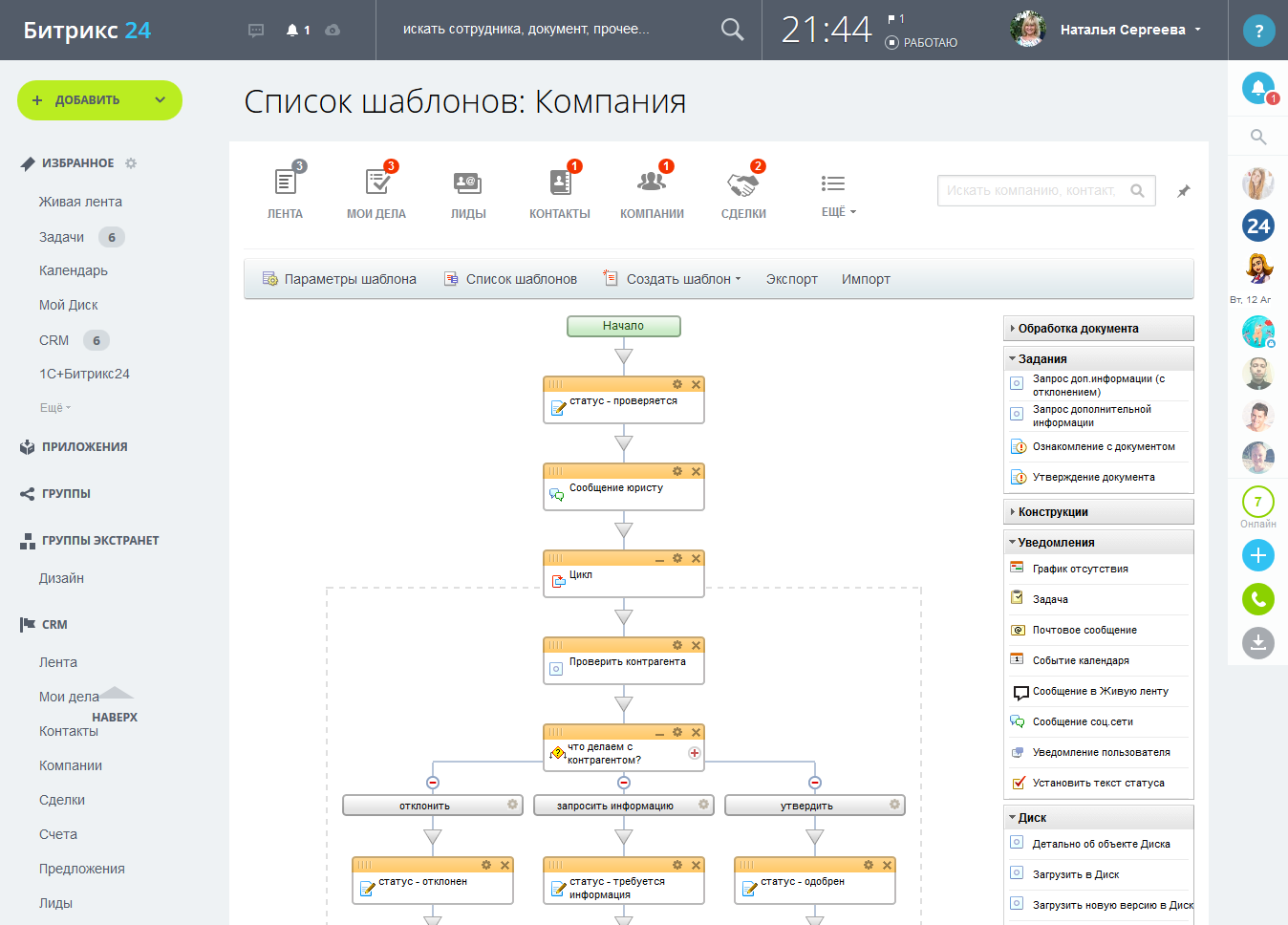 Воспользуйтесь готовыми шаблонами бизнес-процессов или создайте свои. Настройте с помощью визуального проектирования произвольных бизнес-процессов управление самыми разными бизнес-процессами. Организуйте коллективную работу, задействовав бизнес-процессы и включить элементы контроля над их выполнением. Работа в компании станет более слаженной, управляемой и эффективной!
