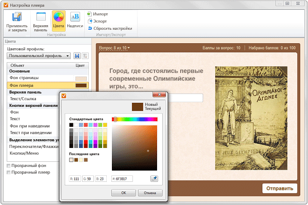 - Дизайн и настройка плеера для просмотра теста